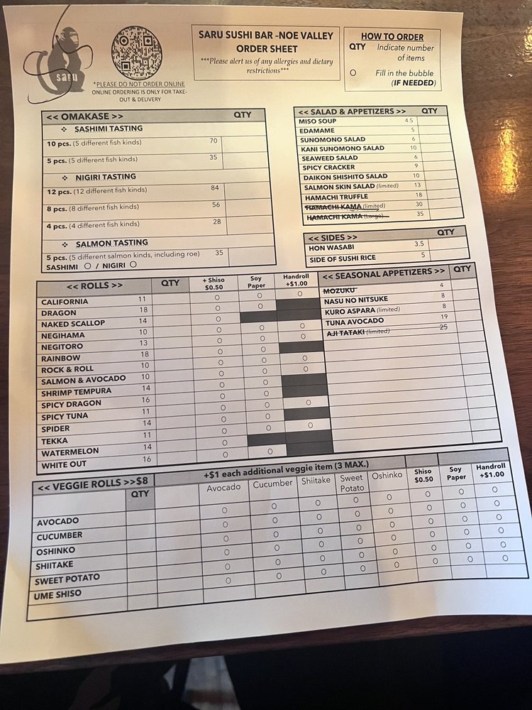 Saru Sushi Bar Menu